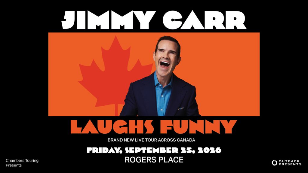 Montréal, QC — Outback Presents and Chambers Touring are proud to announce that global comedy superstar Jimmy Carr is returning to Canada with his biggest national tour ever. The brand-new show, Jimmy Carr: Laughs Funny, will hit an unprecedented 31 cities across the country, a first for an international comedian. The tour will play coast to coast kicking off in Victoria on September 16, 2026 with 5 Alberta stops including Grande Prairie for the first time on September 23, Fort McMurray for the first time as well, on September 24, Edmonton on September 25, for the first time in Medicine Hat on September 26 and Calgary on September 27. Tickets go on-sale Friday, December 5 at 10 AM at jimmycarr.com.